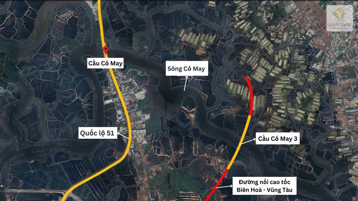 Gold Coast Vũng Tàu nằm gần trục đường kết nối trực tiếp với cao tốc Biên Hòa – Vũng Tàu, nơi cầu Cỏ May 3 giữ vai trò then chốt. Nhờ đó, cư dân từ dự án có thể di chuyển về TP.HCM chỉ trong khoảng 70 phút.
